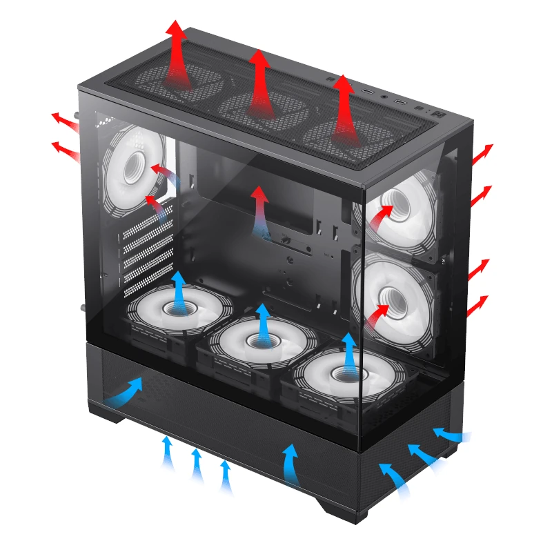 | PSU Cover | 3x120mm (Reverse fan blade)(Fan optional) | |