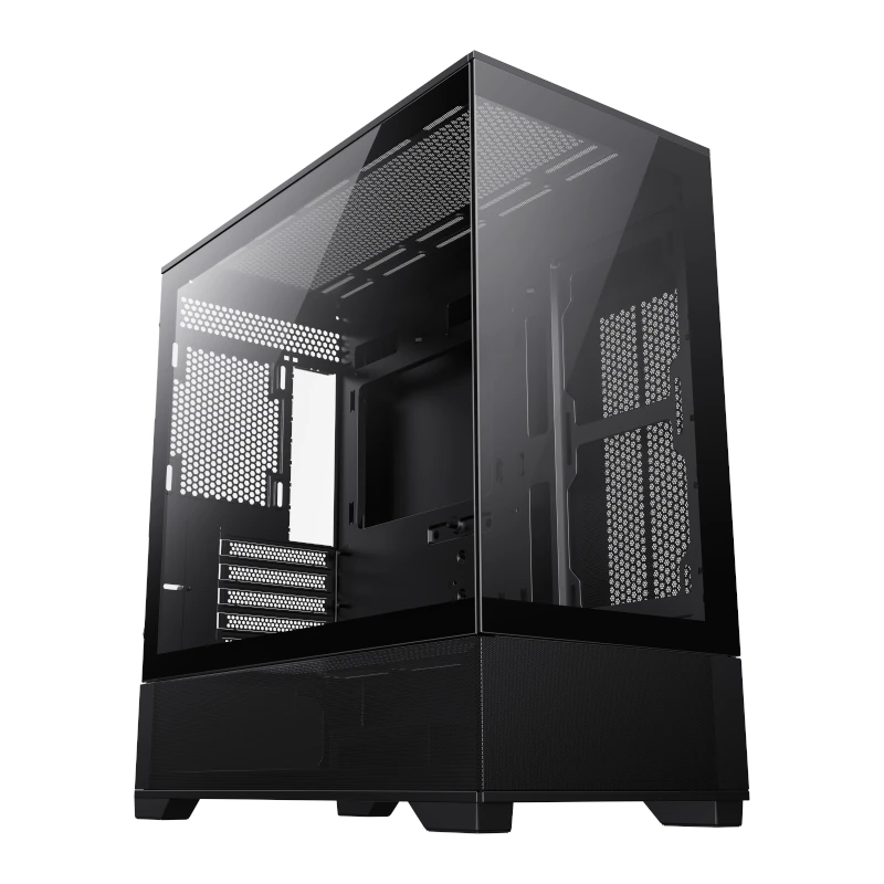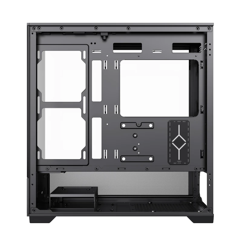 Vista MicroATX tower PC ATX case – Aesthetic looks, airflow focus, easy installation, and ample room for large GPU and cable management. Good build quality computer case made of heavy-duty steel metal frame and 4.0mm tempered glass. ⚡Computer Case Focus on Cooling- The modular motherboard I/O allows you to move the motherboard to a higher/lower position for air-cooled/water-cooled systems. To ensure adequate airflow, a Total 9x120mm fan position, Fine mesh panel at the top, and on the PSU shroud side, help with great ventilation. ⚡Easy Build Gaming PC Case- This case has a lot of flexibilities convenient for components installations: Removeable 5x Sides, Glass to Glass full view; Spacious PC case with Easy Cable Management, A seal plate on the top radiator bracket ensures no pressure leak when installing smaller than a 360 radiator/3x120mm fans at the top. ⚡Latest Gen. Large Graphics Card Ready- This Mid-tower Case is compatible with the largest NVIDIA 4000 series cards thanks to its ample room for graphics cards up to 410mm in length, and 165mm in height (for air cooling mode)
