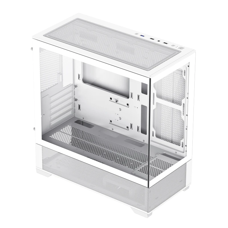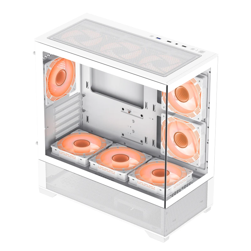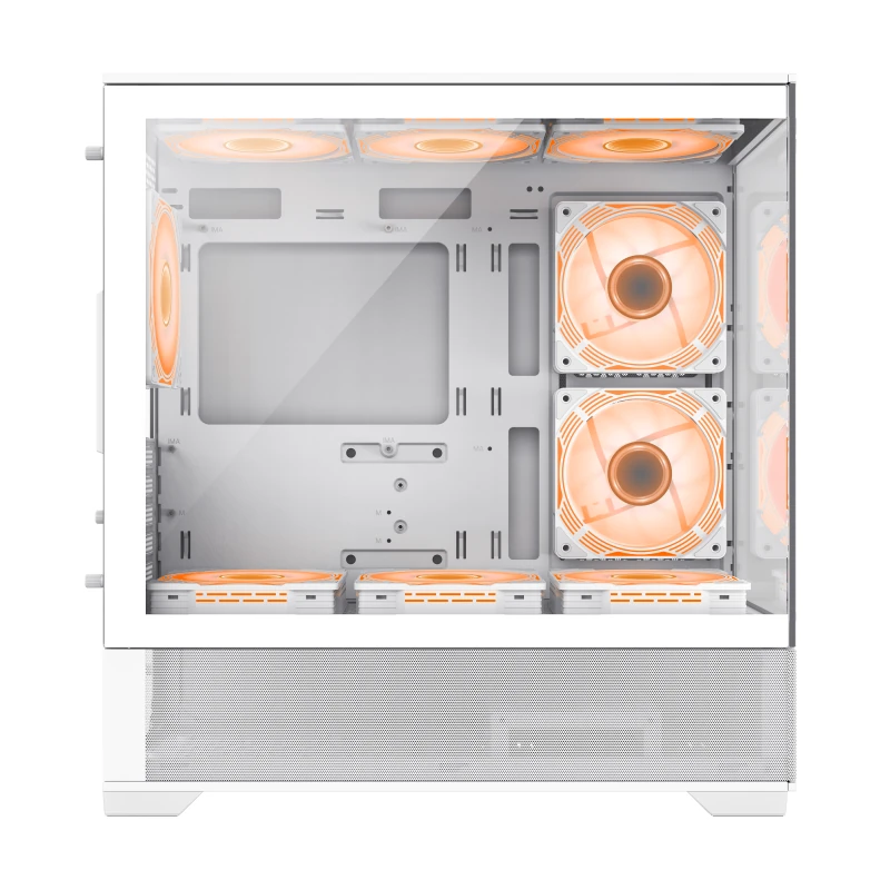 Vista MicroATX tower PC ATX case – Aesthetic looks, airflow focus, easy installation, and ample room for large GPU and cable management. Good build quality computer case made of heavy-duty steel metal frame and 4.0mm tempered glass. ⚡Computer Case Focus on Cooling- The modular motherboard I/O allows you to move the motherboard to a higher/lower position for air-cooled/water-cooled systems. To ensure adequate airflow, a Total 9x120mm fan position, Fine mesh panel at the top, and on the PSU shroud side, help with great ventilation. ⚡Easy Build Gaming PC Case- This case has a lot of flexibilities convenient for components installations: Removeable 5x Sides, Glass to Glass full view; Spacious PC case with Easy Cable Management, A seal plate on the top radiator bracket ensures no pressure leak when installing smaller than a 360 radiator/3x120mm fans at the top. ⚡Latest Gen. Large Graphics Card Ready- This Mid-tower Case is compatible with the largest NVIDIA 4000 series cards thanks to its ample room for graphics cards up to 410mm in length, and 165mm in height (for air cooling mode)
