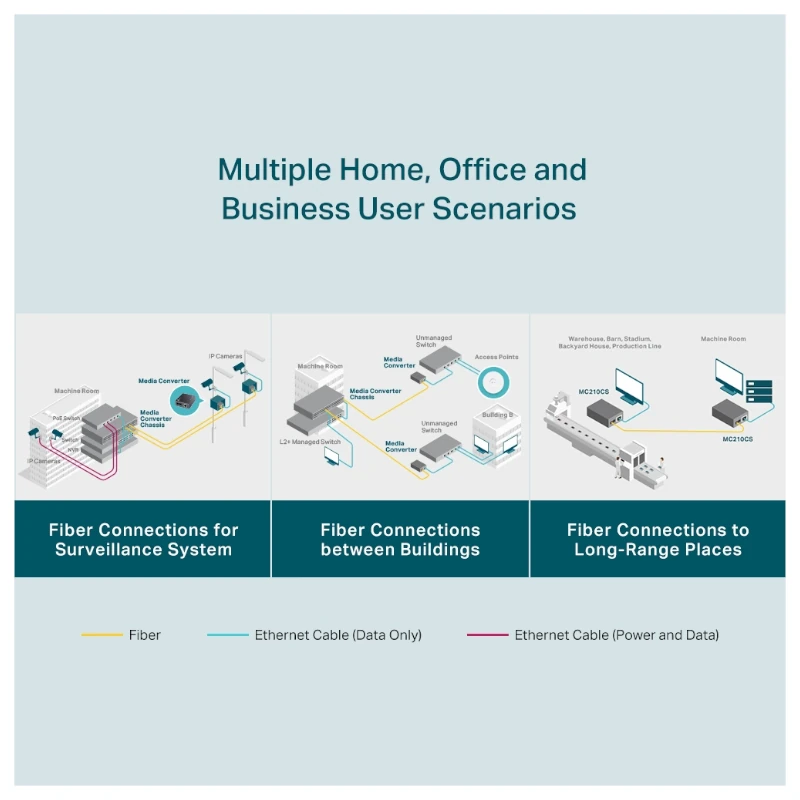 Parmi les autres caractéristiques de ce module, citons la possibilité d’être utilisé en tant qu’appareil autonome (aucun châssis requis) ou avec le châssis TL-MC1400 de TP-Link, Auto MDI/MDI-X pour le port TX et les voyants d’état du panneau avant. Le MC210CS transmettra sur de longues distances en fibre optique en utilisant une fibre monomode jusqu’à 20 kilomètres.