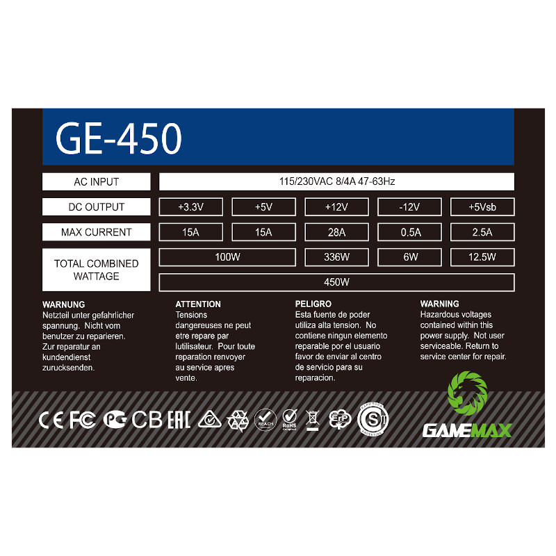 Key Features of GE450 GAMEMAX Alimentation 450W