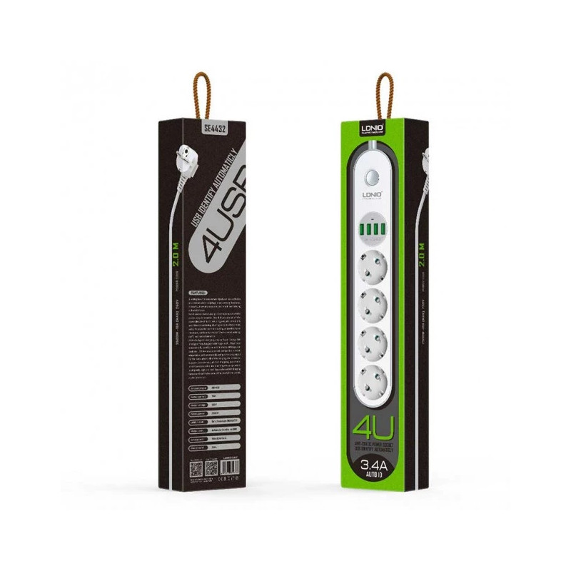 Multiprise LDNIO 4 sorties USB 3.4 A + 4 sorties UE SE4432
