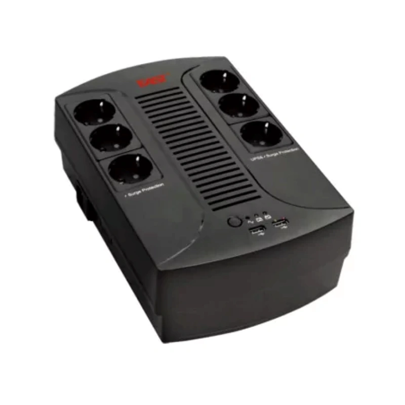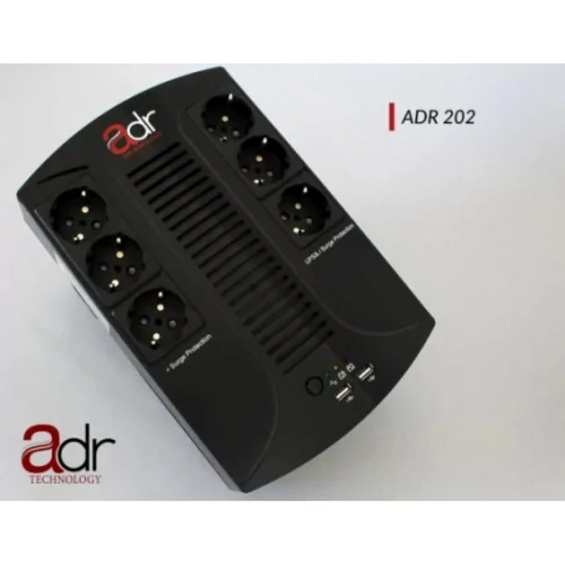 Onduleur ADR 202 650 VA / 390 W – 6 prises de sortie, stabilisation automatique, 15-20 min d’autonomie moyenne. Idéal pour PC, console, modem et équipements sensibles.