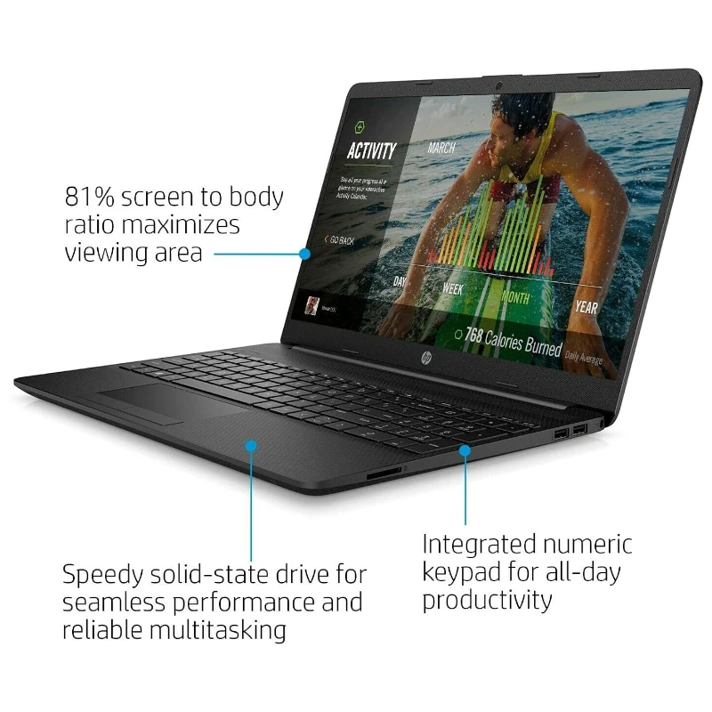 Le PC portable HP 15 est idéal pour les déplacements fréquents. Fin et léger, il est facile à transporter. Son écran de 15.6 pouces est un juste milieu entre confort et mobilité. De plus, cet ordinateur portable HP bénéficie d’un châssis résistant au design élégant. Avec son écran à cadre mince, cet ordinateur portable offre un excellent confort d’utilisation et favorise le partage de contenus.