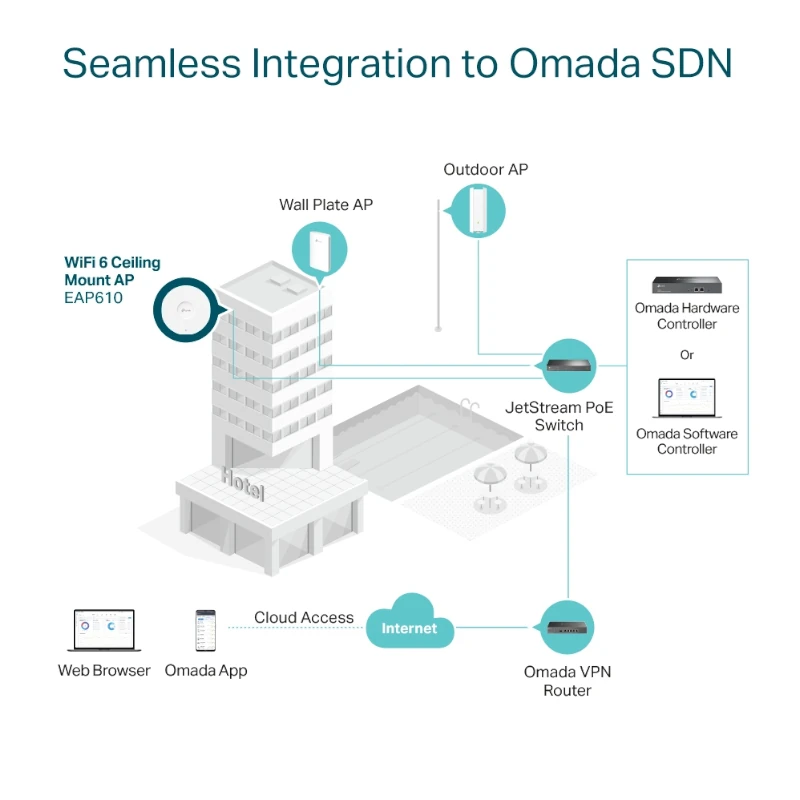 | Zero-Touch Provisioning | Yes. Requiring the use of Omada Cloud-Based Controller (Supported by EAP610 V1, V2, V2.2 and above, while is not supported by EAP610 V3) |