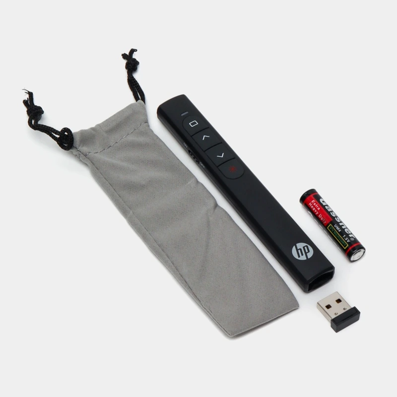 Le pointeur laser HP SS10 est un accessoire indispensable pour vos présentations professionnelles. Grâce à sa technologie sans fil 2.4 GHz, il offre une portée allant jusqu’à 15 mètres, vous permettant de vous déplacer librement tout en gardant le contrôle. Il est équipé d’un laser rouge puissant, bien visible même dans les grandes salles. L’ergonomie du design assure une prise en main confortable pour une utilisation prolongée. Il est compatible avec PowerPoint, Keynote, Google Slides, sans nécessiter de logiciel. Le récepteur USB se range directement dans le corps du pointeur, idéal pour les déplacements. Fonctionne avec pile AAA, facilement remplaçable. Compact, pratique et efficace, il convient parfaitement aux enseignants, conférenciers et formateurs.