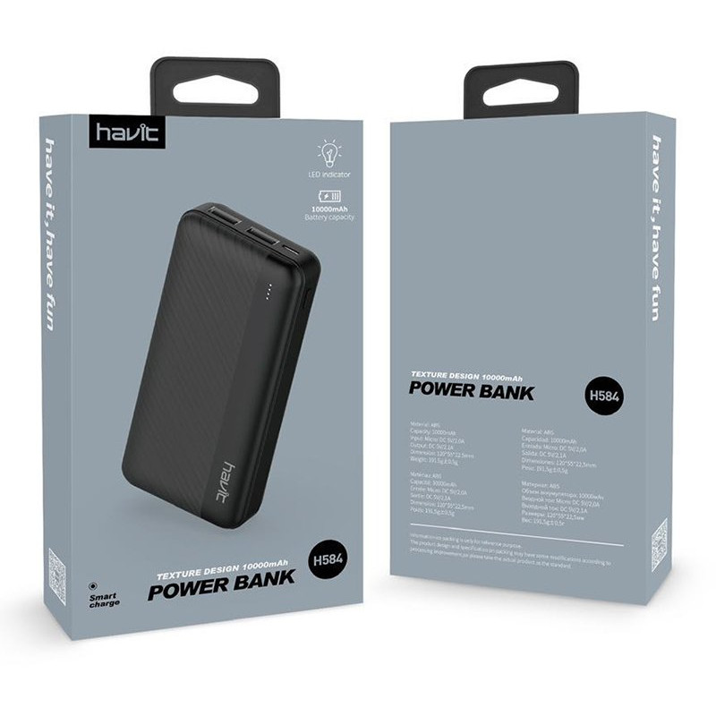 POWER BANK HAVIT 10000mAh H584 avec indicateur LED