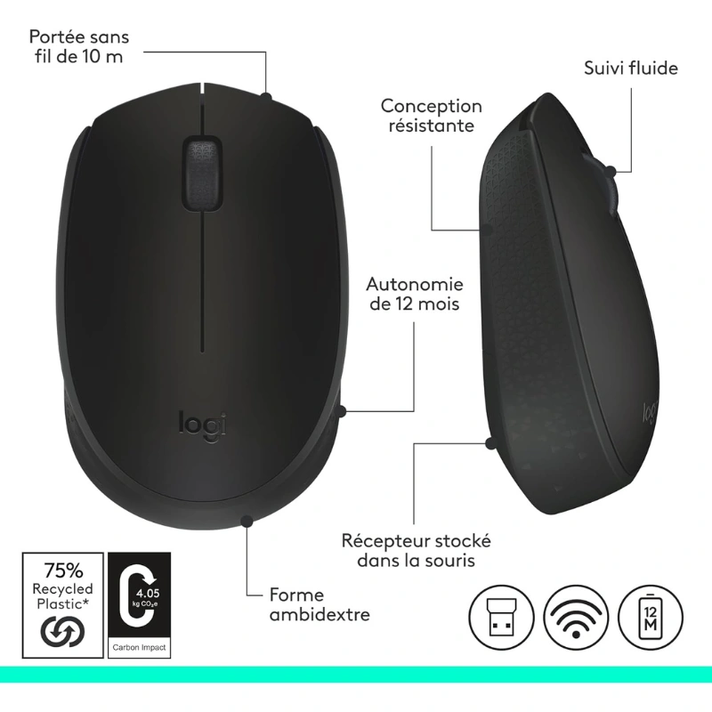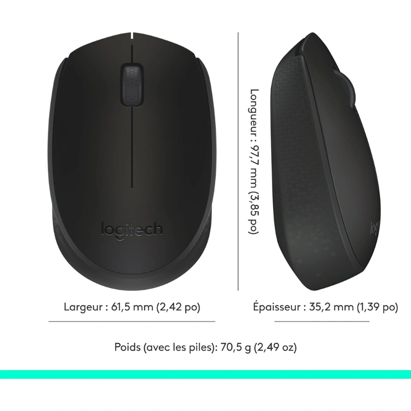 La Souris Sans Fil Logitech M171 est une solution pratique pour les utilisateurs nomades. En effet, elle offre une connectivité sans fil fiable. Grâce à son design compact, elle s’adapte aux besoins quotidiens. Ainsi, elle convient aux PC et Mac.