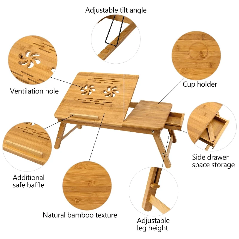Table Laptop Bamboo BM62 Pliante -Refroidissement USB